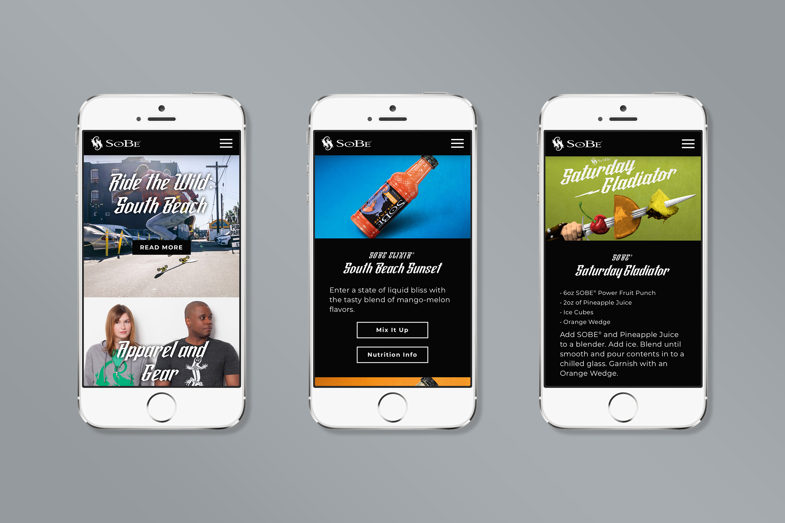 New Visual Identity System for SoBe + SoBe.com Redesign and Development
